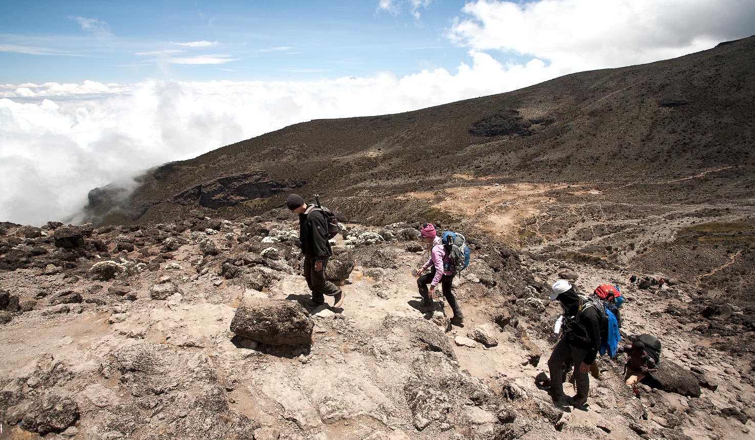 The professional mountain guide will give you a briefing early in the morning after breakfast and lead you to climb the mountain. On this day you will get the chance to view the Northern Ice fields from the western side of the mountain with some unusual views of Kibo as you head to Shira 2 Camp. In the afternoon you will take an acclimatization walk then head back to the camp.